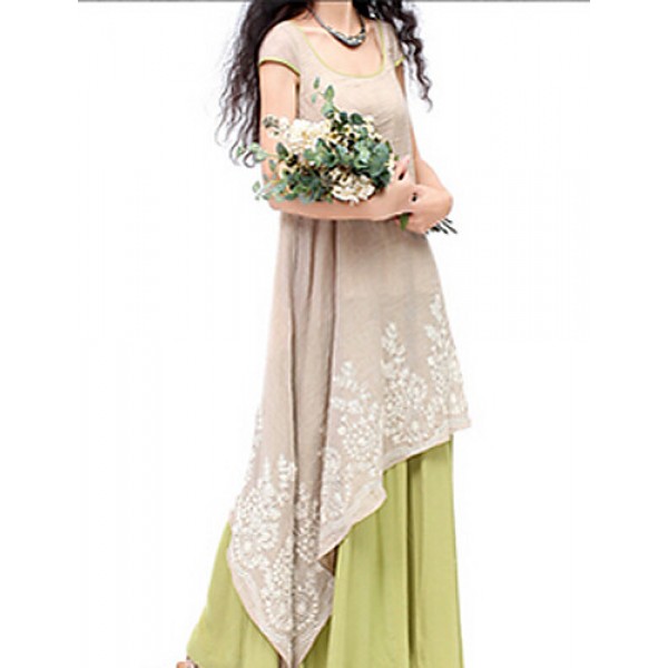 Vintage/Sexy/Casual/Cute/Work/Maxi Micro-elastic Sleeveless Maxi Dress (Linen)